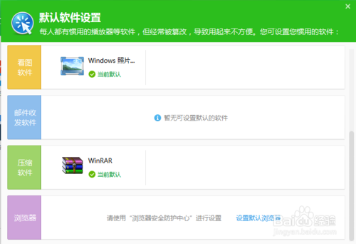 6、当然我们也可以通过一些安全软件来设置。进入360卫士点击右下方的更多选项,然后在【我的工具】栏目下方可以看到【设置默认程序】选项,点击。