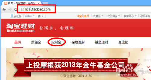 阿里招财宝的官方入口是通过淘宝的88或licai域名,进入后在页面上部即可看到招财宝的入口。