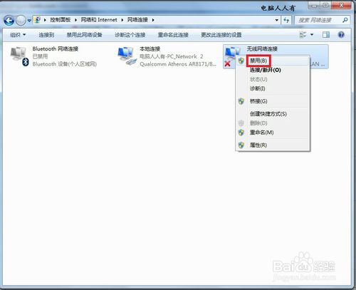 使用鼠标右键点击有问题的连接图标→禁用