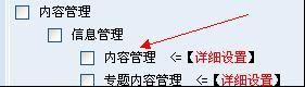 4、“ShowOnForm” 参数作用:是否在用户管理 >> 管理员管理 >> 角色管理 >> 常规模块权限设置中配置.举例:内容管理菜单节点设置了 ShowOnForm="true" 那么角色常规模块权限设置就会多出此选项(如图)
