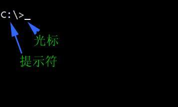 在DOS环境下,开机后,我们面对的不是桌面和图标,而是这样的电脑屏幕:这个C:\>叫做提示符,这个闪动的横线叫做光标。这样就表示电脑已经准备好,在等待我们给它下命令了。我们现在所需要做的,就是对电脑发出命令,给电脑什么命令,电脑就会做什么。那我们又怎么向电脑发布命令呢?