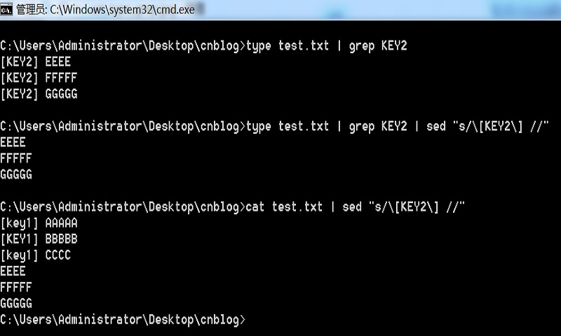 2. type/cat + grep 过滤文件内容:cat test.txt | grep KEY2 或 type test.txt | grep KEY2