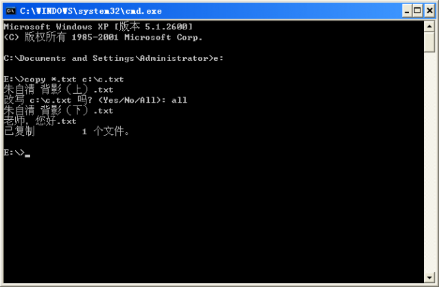 3.在弹出的“改写c :c.txt吗?”输入all,(all表示所有)回车运行,如下图所示。