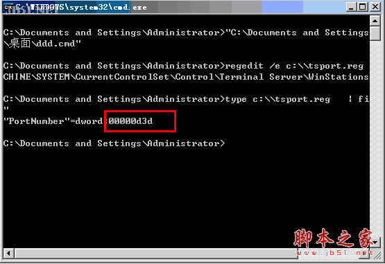 type c:\\tsport.reg | find "PortNumber"