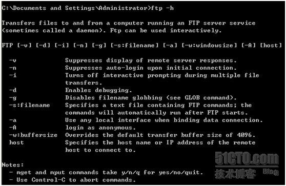一、FTP命令说明 1、在windows系统中因为FTP是一个程序,如果在bat脚本中直接调用FTP的命令,在执行时总会弹出命令行窗口,循环在>FTP光标这,所以要换种方式,利用-S:filename,更多的命令请输入-h查看。