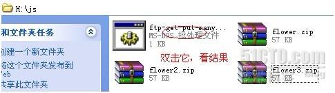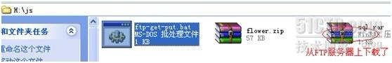 我们来看看结果,见下面两张图。从XP系统上看,H盘的JS目录,多了个sql.rar,FTP服务器上的根目录多了个flower.zip,这说明,刚才的脚本完成正常的执行了,达到了预期的目的。