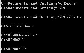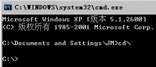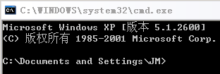 例如,我们打开命令行窗口的时候,一般是这样操作的:在桌面左下角找到“开始”菜单,打开“运行”,输入“cmd”,回车。这个时候,命令行窗口默认的当前目录位于当前用户所在的路径下,比如:C:\Documents and Settings\JM,如下图所示。