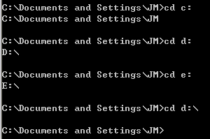 从当前目录下跳转到不同分区路径d:\的时候,cd d:\没有成功,当前目录没有发生改变;当添加了一个参数 /d 之后,命令成功地执行了。原来,要跳转到不同分区的时候,需要添加强制跳转参数 /d 。但是,如果进入的是当前目录的子目录,则可以不使用 /d 参数。这一点是很容易被大家忽略的,希望能引起足够的重视。