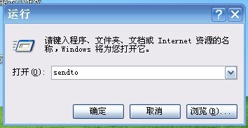 1、开始/运行,输入sendto,回车。打开sendto文件夹。