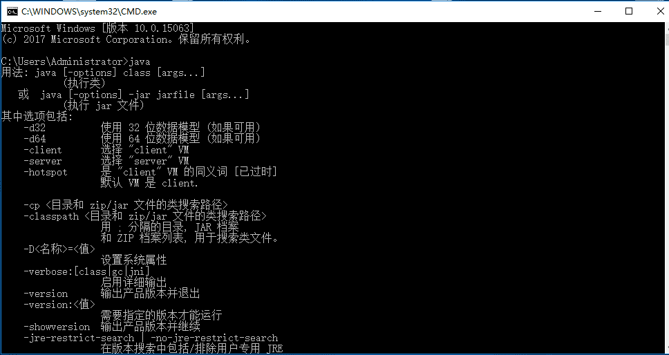 6、此时关闭命令窗口java环境变量就已经设置好了,可以运行窗口输入cmd后,分别运行:java和javac进行测试出现如下字样即表示java环境变量已经配置好了。