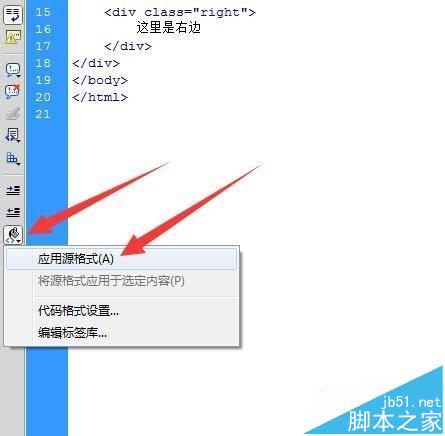 4、或者可以用快捷按钮,在Dreamweaver的左侧有一列快捷方式的图标,找到像油漆桶一样的图标,也是格式化代码的命名键。