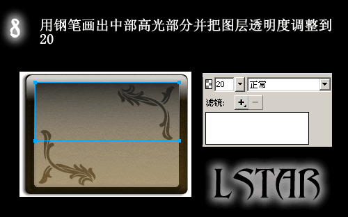 8.用钢笔画出中部高光部分并把图层透明度调整到20。