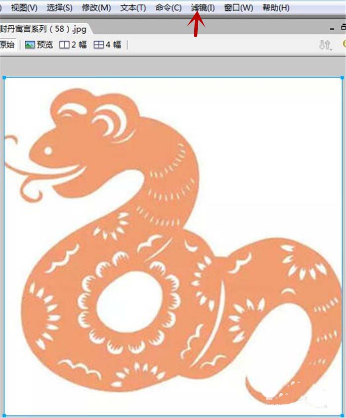 3、将在Fireworks软件中插入一张图片,鼠标选中功能区中的”滤镜“选项卡