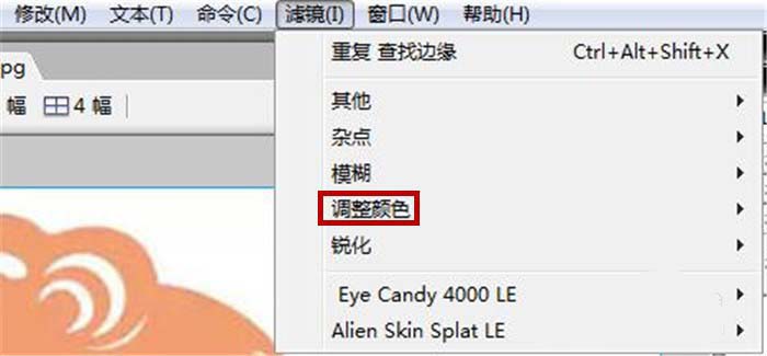 4、在其弹出的菜单列表中,使用鼠标点击”调整颜色“选项