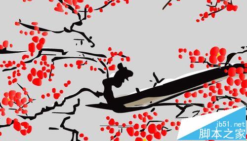 7、绘制完成的红梅。