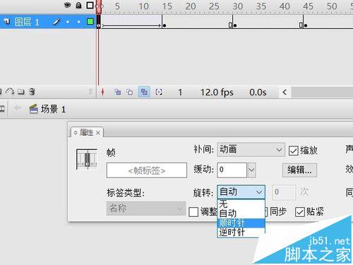 11、第15帧创建补间动画,旋转选项栏里设为“逆时针”。