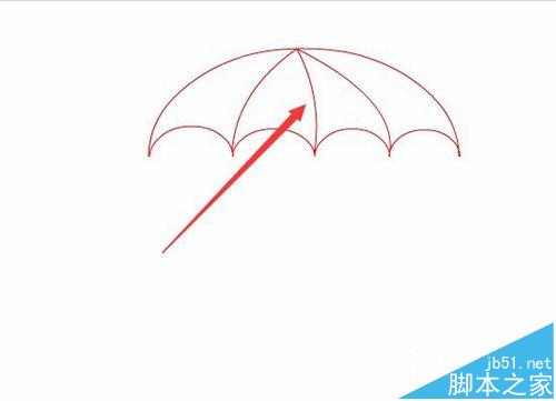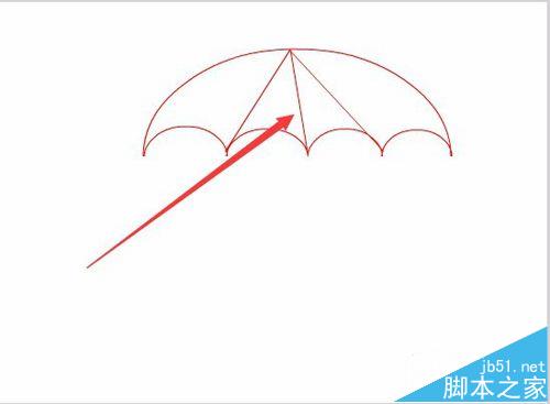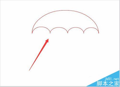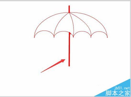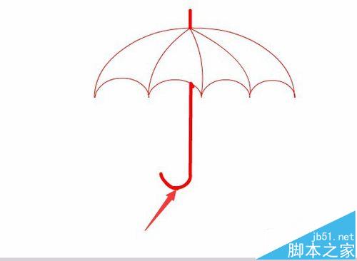 10、再在工具箱内找到钢笔工具,用钢笔工具绘制伞吧的把手,如图所示: