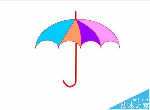 flash是一款二维的矢量软件,利用该软件我们可以制作矢量图形,也可以制作二维的动画,在进行矢量图形绘制的时候,在其内有个工具箱,我们可以使用里面的工具进行图形的制作,下面我们就来制作一把漂亮的雨伞,其图形如图所示:
