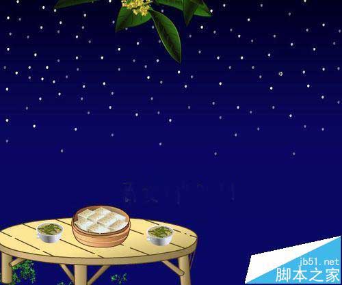 中秋时节,金桂飘香。走出高楼,让我们坐在桂花树下,饮桂花茶、品桂花糕,在恬淡的香气、银色的月光里,静醉在中秋的夜色中,如下图所示。