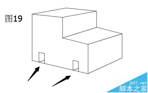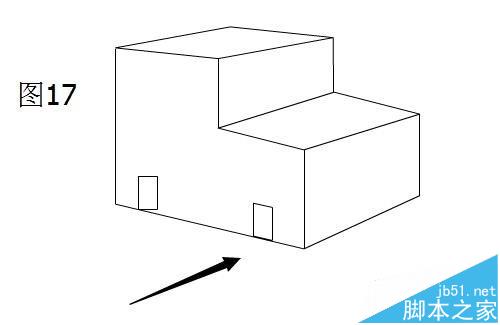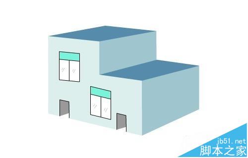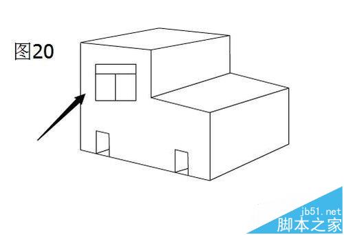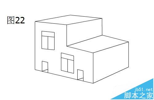 6、同样操作画2楼的楼顶;现在,用“线条”工具把两层楼的楼顶加直线连接起来;再画5条直线把楼房墙壁连接出来。如图12所示;