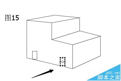 8、在工具箱这里点选“选择”工具,把“门1”图形选中,再点“任意变形”工具;“门1”图形即显出如图15效果;然后把图形中心点移动到左下角;