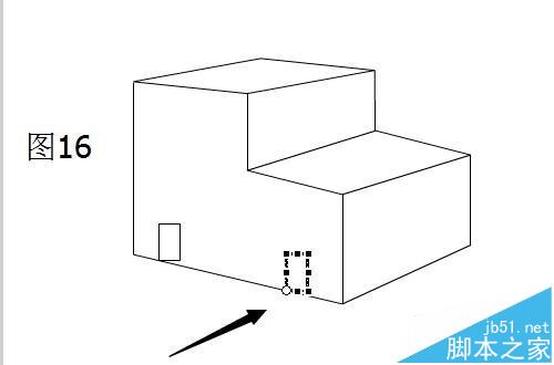 9、光标放在“门1”图形的右侧边框,光标呈上下双箭头样式;往下拖,把“门1”图形变形成如图17的效果;同样操作,把“门2”图形设置成如图18的效果;