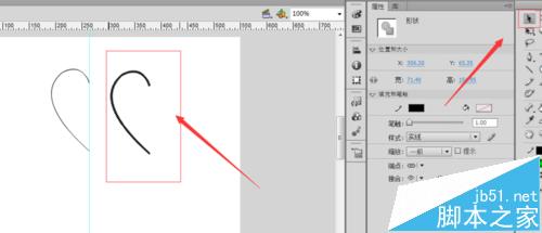 6、翻转过来后,要先选择需要拖动的物体,用鼠标放在心形端点拖动。并将辅助线移走