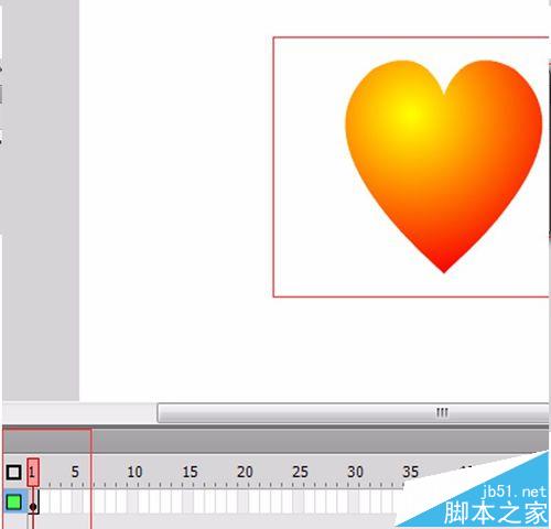11、点第一帧,按住shift,将心缩小,创建补间动画,将心拉到一个新的位置,出来一条路径。用任意变形工具按住shift键等比例拉大