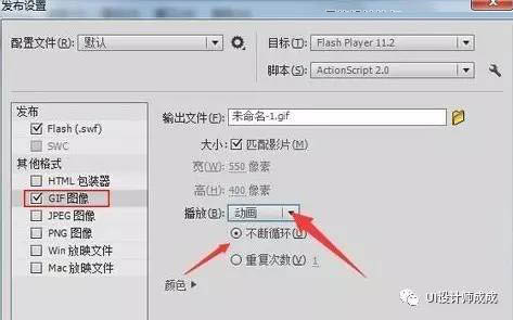 2、选择GIF图像,动画,不断循环,点击发布即可