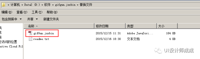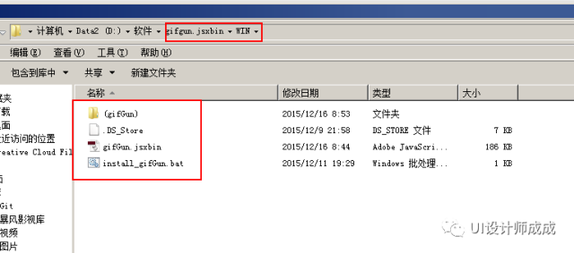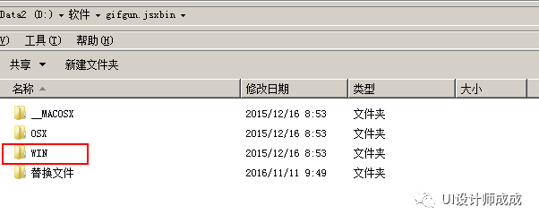 1、将插件压缩包gifgun.jsxbin解压,找到里面的win文件夹