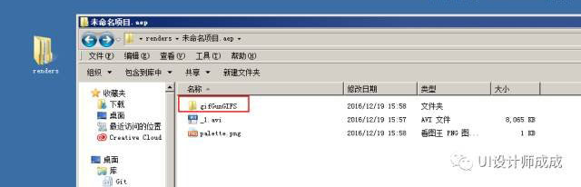 8、桌面找到renders文件夹,进入找GIF图片即可。有些时候会因为设置问题直接生成到桌面或者其他文件夹,这个根据情况找就行了。