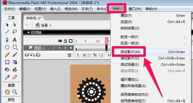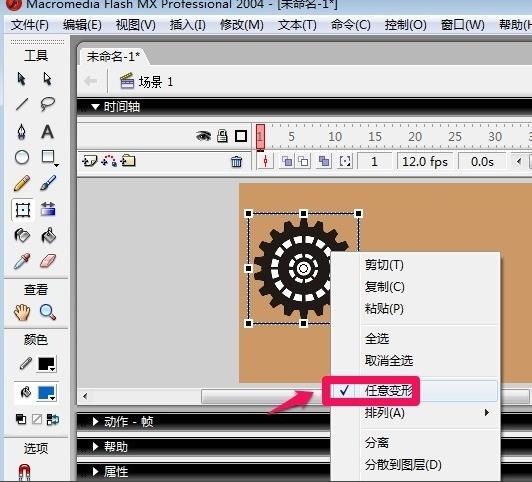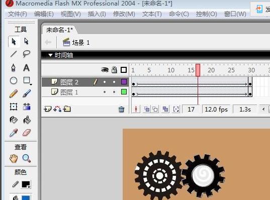 4、这里小编导入一张齿轮的图片到舞台上。