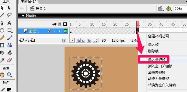 6、然后我们在时间轴上的其他地方,单击鼠标右键插入一个关键帧。