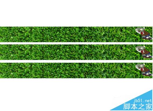 5、新建图层3,图层4,把改后的僵尸元件分别放在各自的图层中对应相应的草坪上;