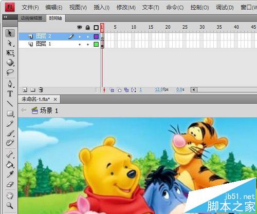 14、回到场景,层1放入做好的背景动画。水平、垂直居中,与舞台对齐。