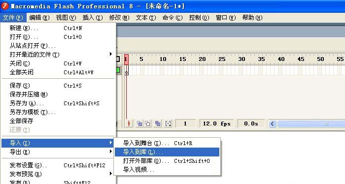 1、 打开Flash软件,鼠标左键单击菜单下的【文件】>>【导入】>>【导入到库】,这样就可以把外部图形引用进来,如下图所示。