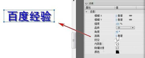 1)若要设置投影的宽度和高度,请设置“ 模糊 X” 和“ 模糊 Y” 值。