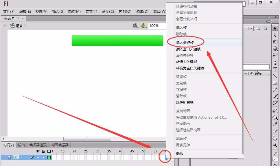 9、我们可以看到,在时间轴上多了一个长箭头,表示补间动画创建成功。