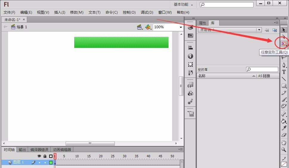 6、选中第一帧,选择“编辑栏”中的“任意变形”工具。