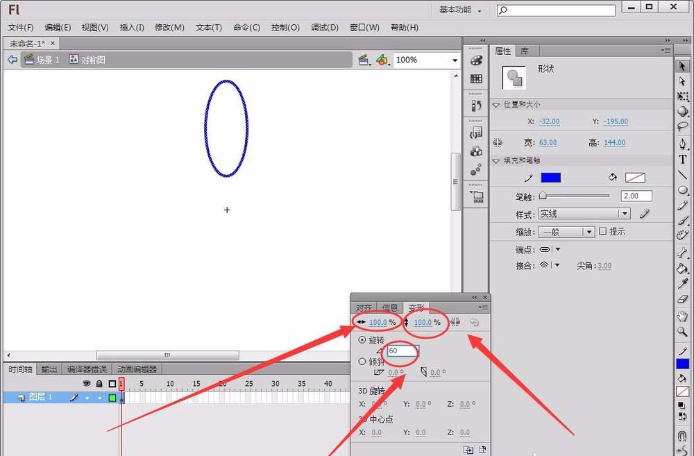 12、在“变形”窗口中,设置“缩放宽度”和“缩放高度”为100%,“旋转”角度为60度。(注:角度根据具体情况确定)