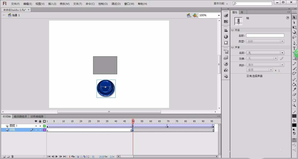 2、插入新图层,命名为“按钮”,在第50帧插入新空白关键帧