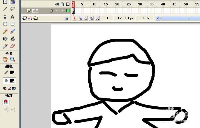 2、接着,鼠标左键用刷子工具在画布上拖动绘制出一个卡通男孩人物出来,如下图所示。