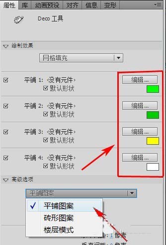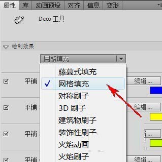 4、在“Deco工具”的属性面板里“绘制效果”样式中选择“网格填充”