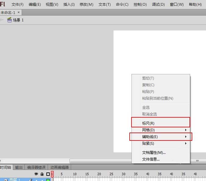 Flash cs6与大部分设计软件一样,也提供了标尺民辅助参考线功能,使用标尺和参考辅助线,可以快速精确定位图形位置,为整体动画设计布局提供了便利。