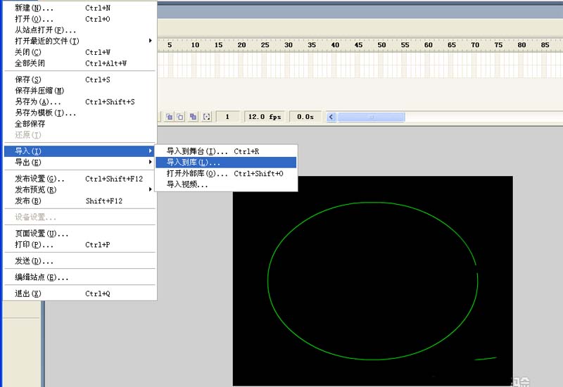 1、启动flash8,执行文件-新建命令,新建一个大小为800*600,帧频为12fps,背景颜色为黑色的文档。