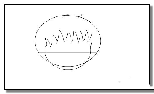 2、选取线条工具,大约在椭圆的三分之一处画一条横线。把多余的线条删除;剩下的就是脸的轮廓。