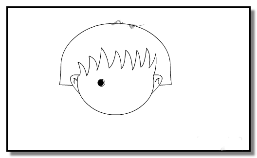 7、新建图层,用线条工具,在脸两边各画一只耳朵。用橡皮擦把耳朵下多余线条擦除掉。