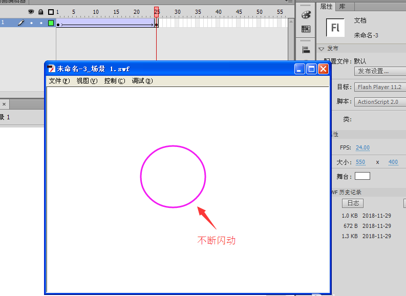 4、按 Ctrl+Enter 组合键,测试影片效果,发现数字“5 ”并没有旋转,而是在不断的闪动...