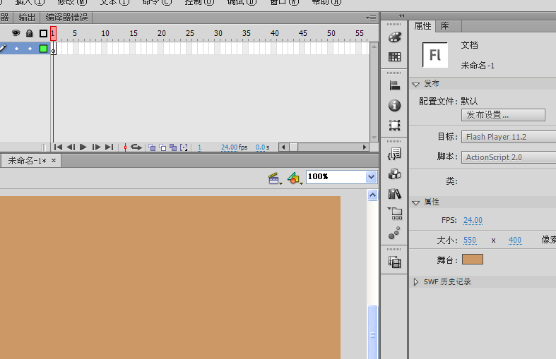 3、打开flash cs6,新建一个AS2.0的文件,将舞台的背景色做一个更改,以便更好的观察文字...