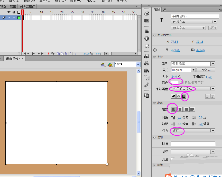 4、选择文本工具插入一个动态文本,并设置如下属性: